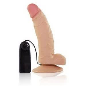 Penis Vibrador Curvo Ventosa e Escroto 15 x 3,5cm Sensual