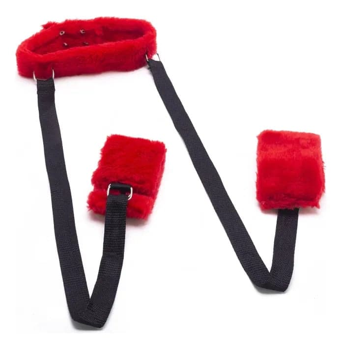 O primeiro contato já entrega a proposta: a pelúcia vermelha envolve o pescoço com suavidade, enquanto as amarras criam uma sensação imediata de entrega guiada. É esse contraste entre conforto e controle que transforma um simples acessório em uma experiência de conexão, presença e intimidade consciente.